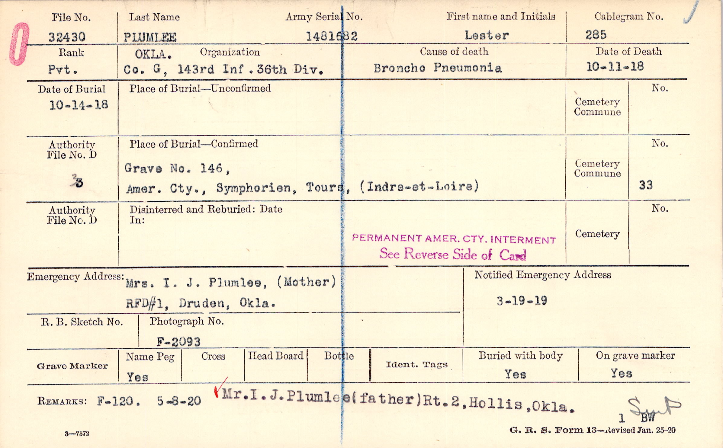 | 🌹 Plumlee, Lester W. |