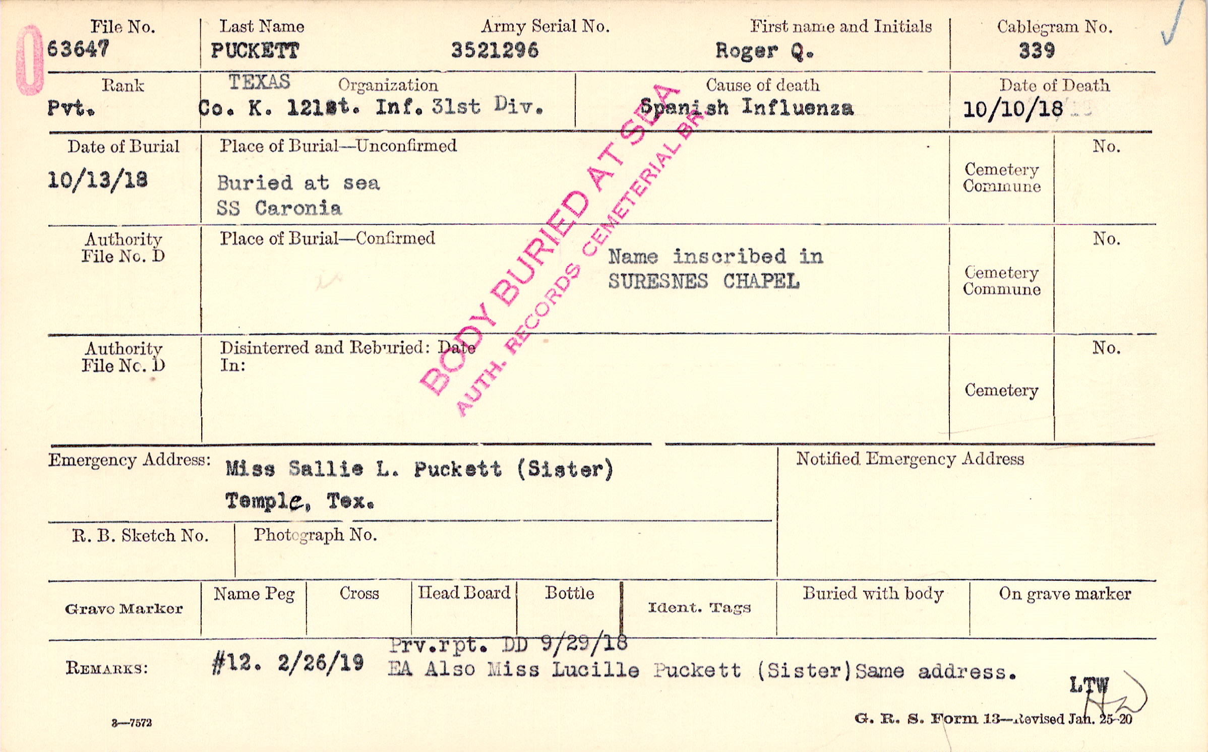 | 🌹 Puckett, Sam A. |