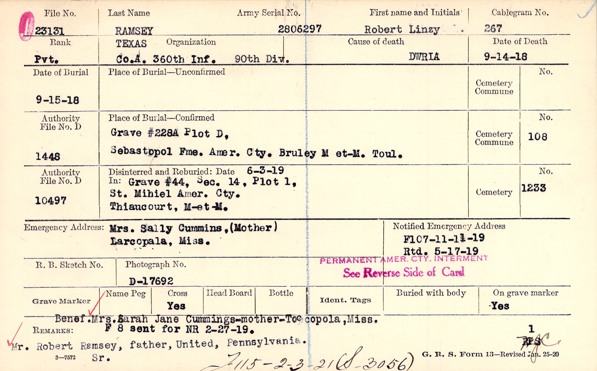 | 🌹 Ramsey, Willie L. |