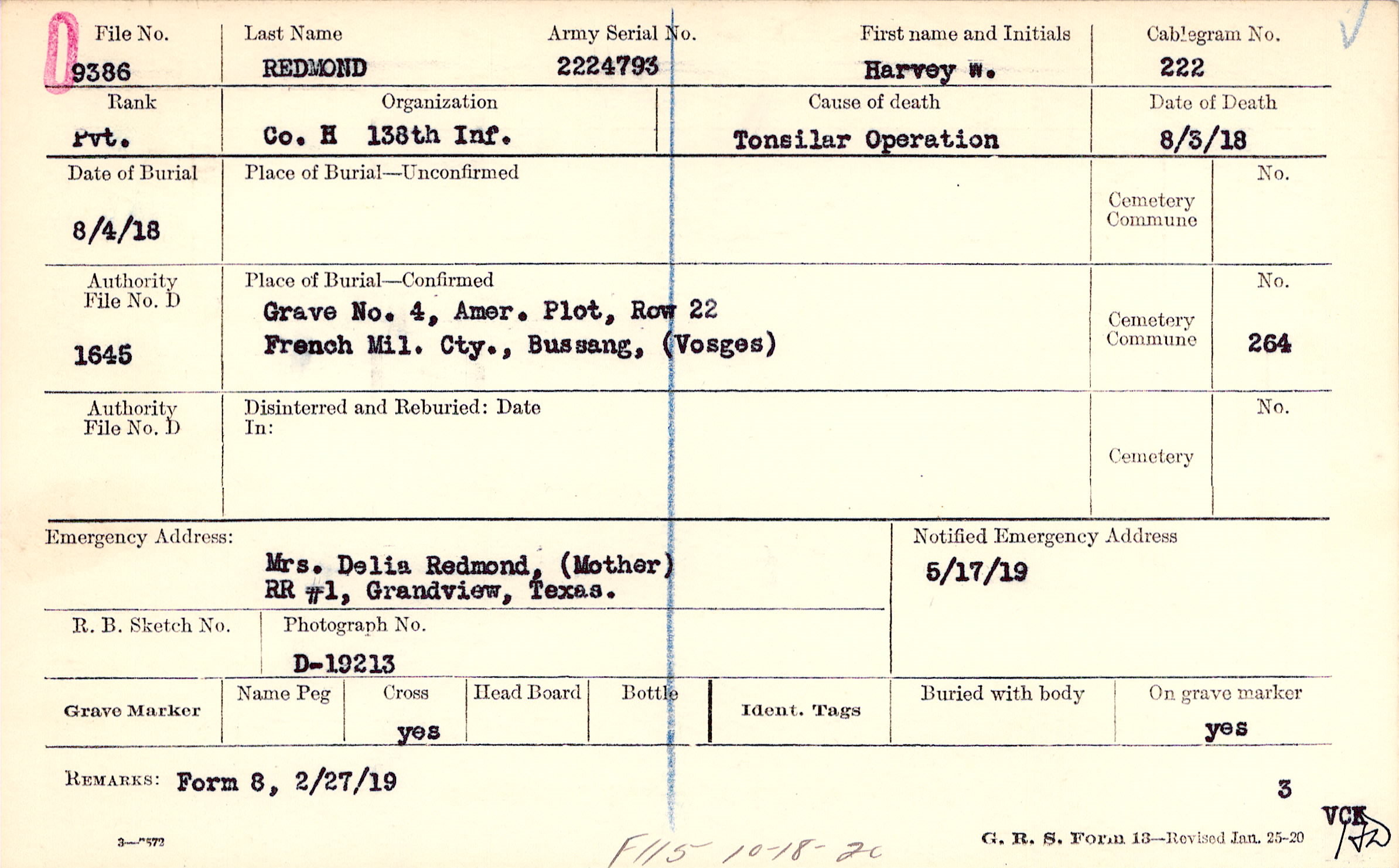 | 🌹 Redmond, Harvey W. |