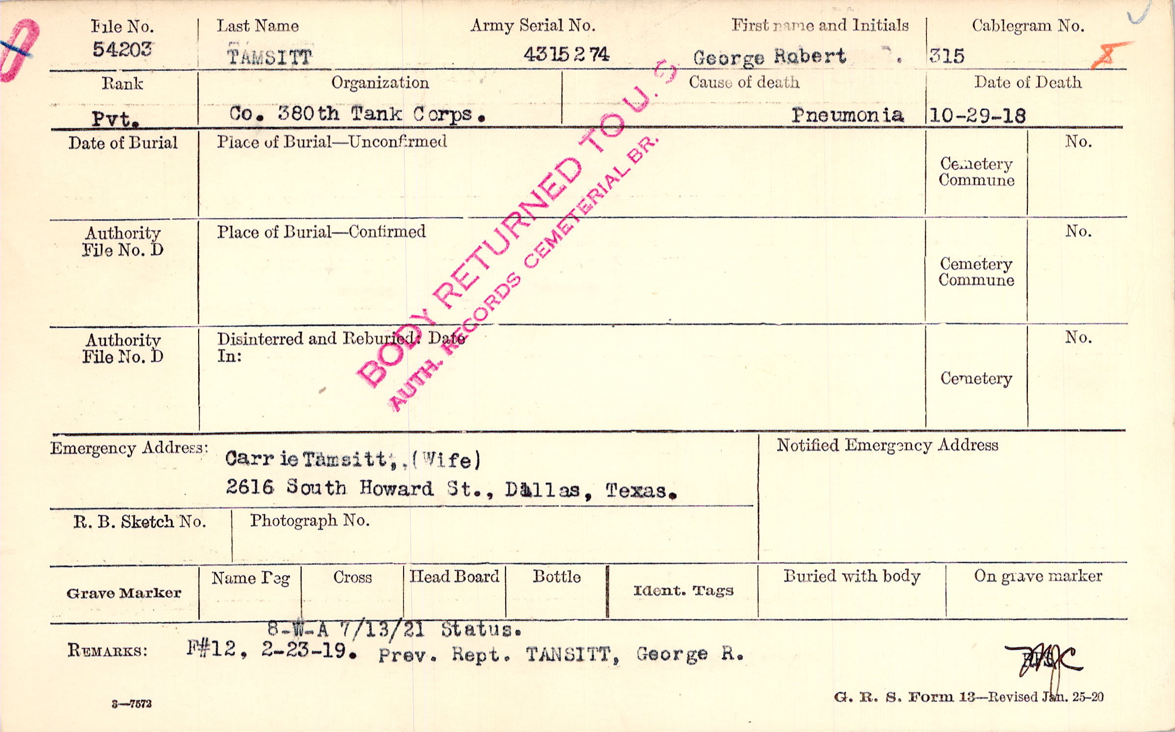 | 🌹 Tankersley, James A. |