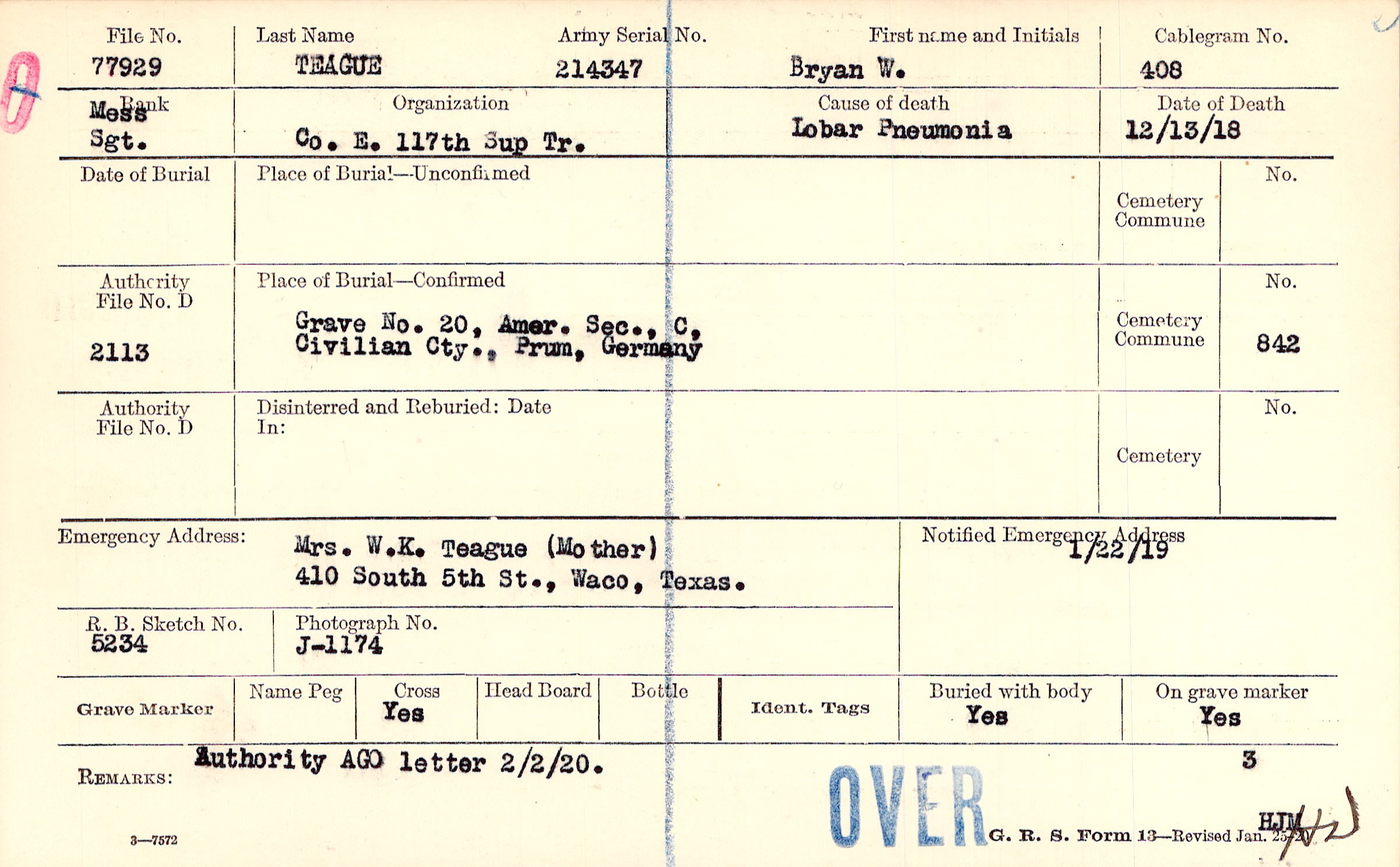 | 🌹 Teague, Warren A. |