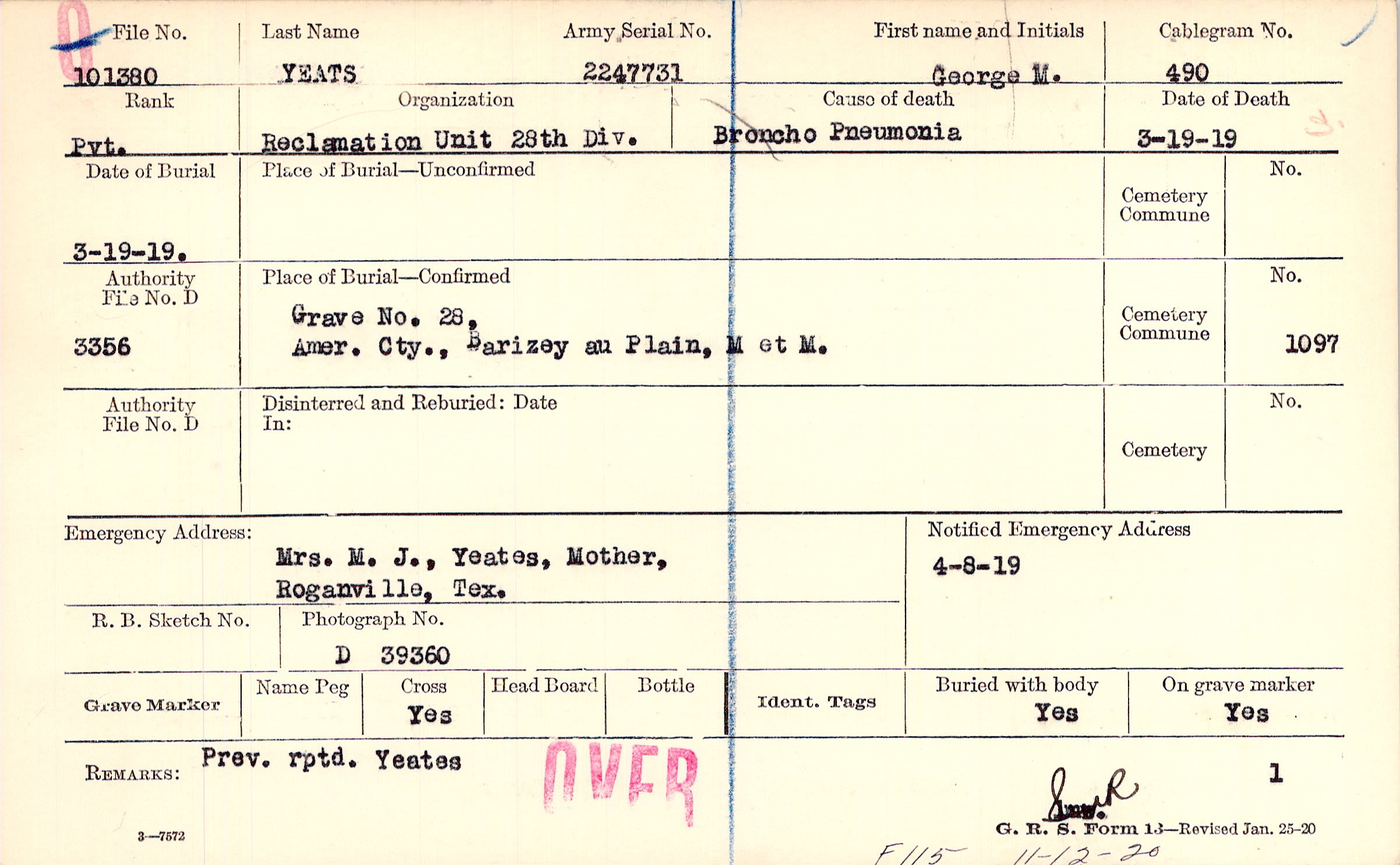 | 🌹 Yeats, George M. |