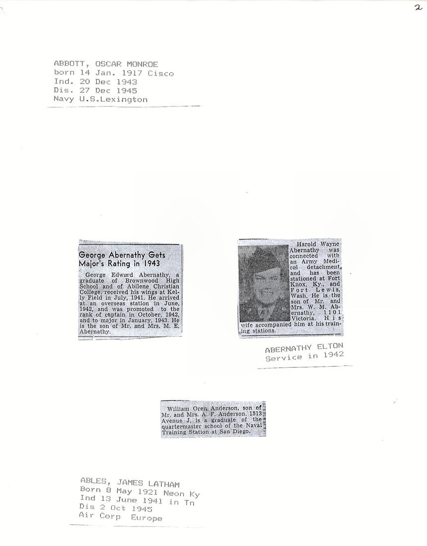 | ABBOTT | Oscar M | View | ABERNATHY | Elton | View | ABERNATHY | George | View | ||